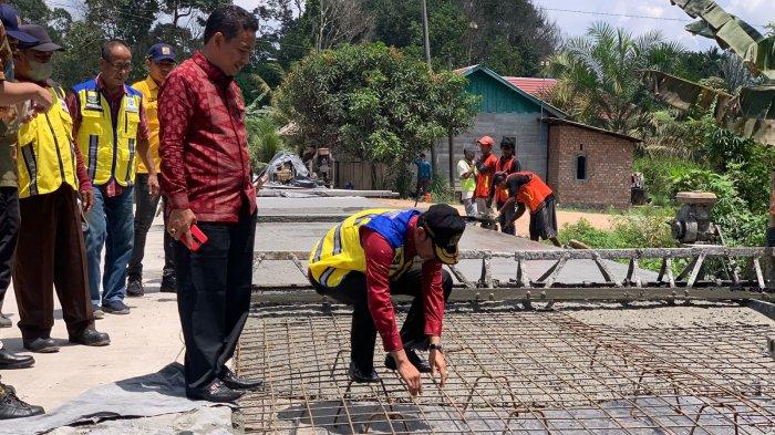 Jambi Seru – Ketua DPRD Provinsi Jambi, Edi Purwanto melakukan peninjauan langsung terhadap proyek pengerjaan jalan yang dilakukan oleh Dinas PUPR Provinsi Jambi di Desa Sumber Jaya, Kecamatan Kumpeh, Kabupaten Muarojambi, Selasa (23/8).