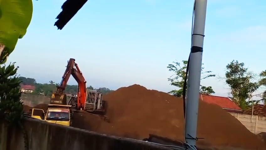 Terlihat juga puluhan truk keluar masuk bergantian di lokasi itu, debu-debu berterbangan masuk ke rumah dan tempat usaha warga. (uda)