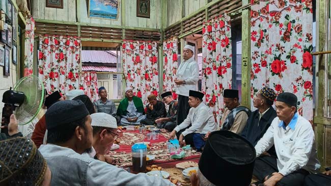 Sebelum bersilaturahmi dengan warga di rumah Azhar Mulia, Al Haris melakukan sholat subuh berjamaah dengan warga di Masjid Baiturrahim Dusun Lubuk Landai.