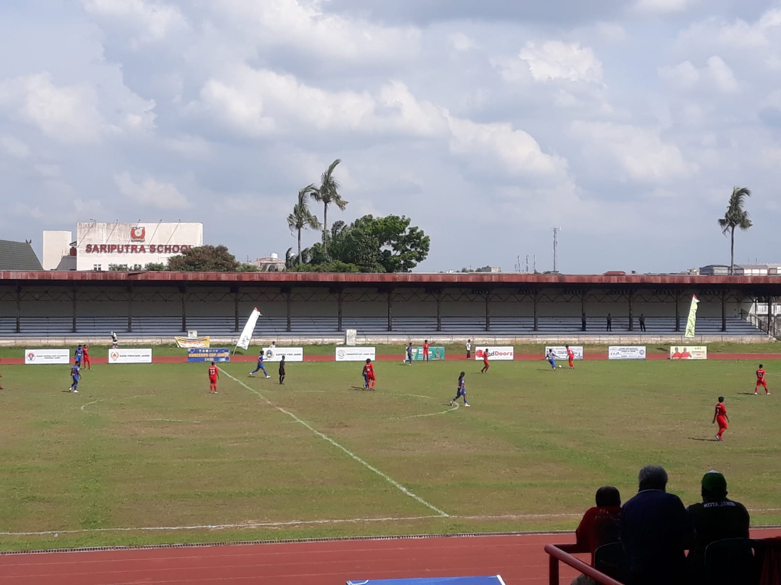 Jambi Seru – Laga Gubernur Cup Jambi antara Kota Jambi kontra Tanjab Barat berlangsung di Stadion Tri Lomba Juang (Koni) Kota Jambi, Kamis (13/1/2022) siang.